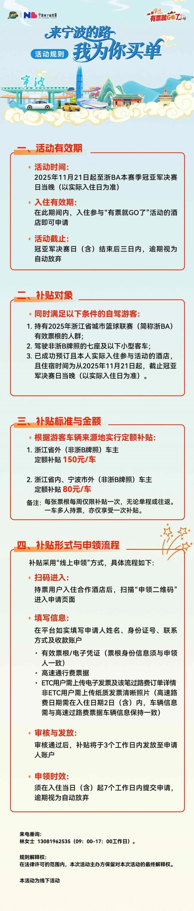 “有票就GO了”活动是宁波深化文体商旅融合、激活消费潜力的创新实践。未来,更多精心策划的主题线路及特色玩法还将陆续上线,持续放大“一张票撬动一座城”的乘数效应,吸引更多游客来到宁波、了解宁波、爱上宁波。