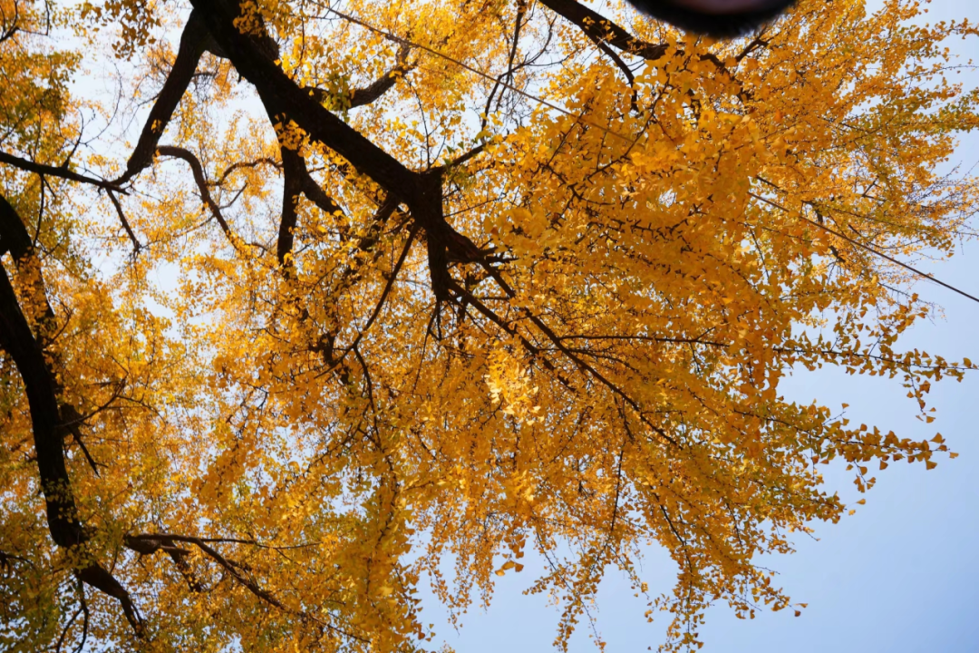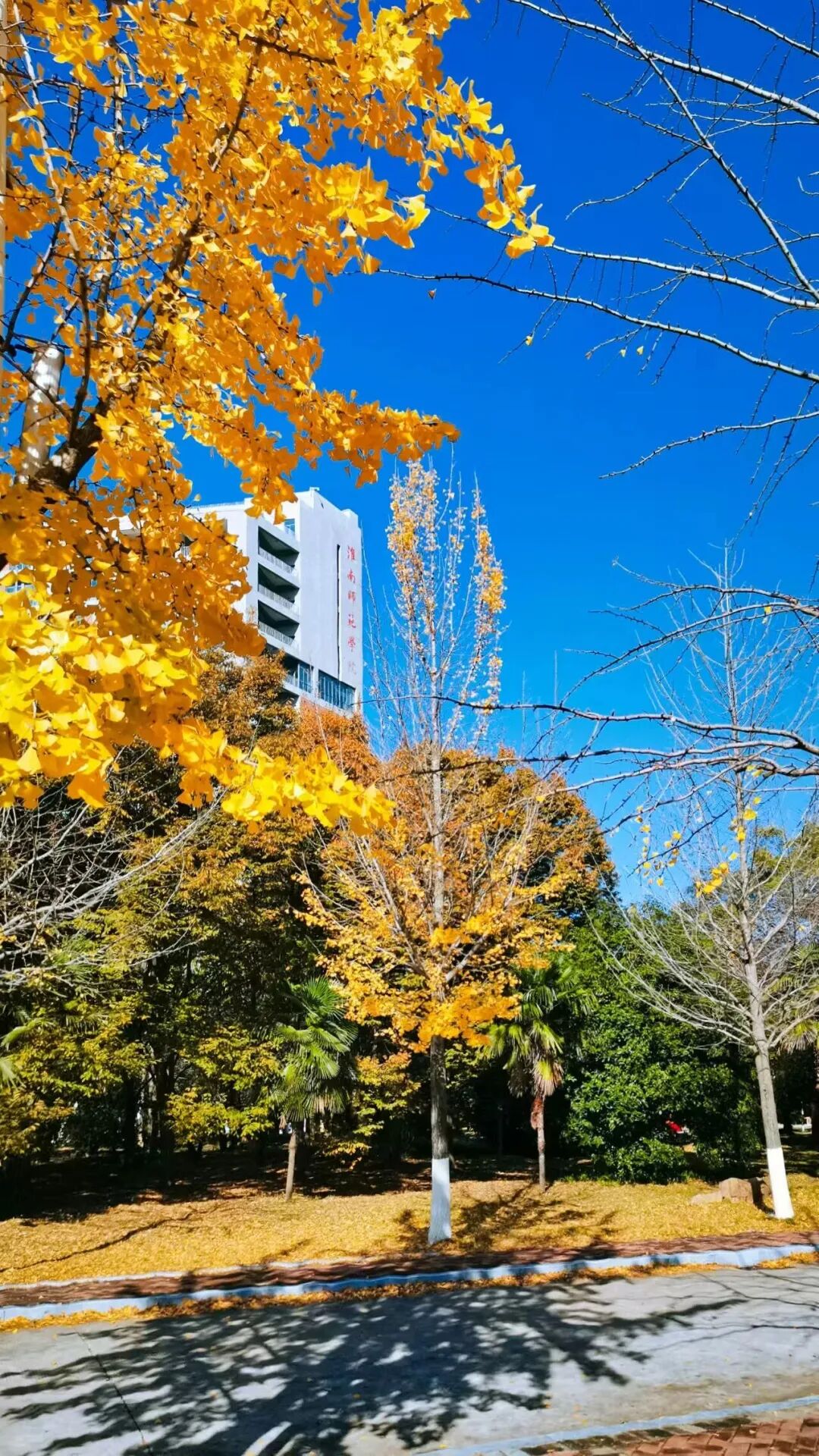 校园里的银杏是独有的青春限定款!道路两旁的银杏整齐排列,金黄的枝叶搭起“金色长廊”,风吹叶动时沙沙作响,仿佛在诉说青春故事。学生们在其间穿梭,或捧书静坐树下,或与好友合影留念,冬阳、银杏与青涩笑脸,构成了最治愈的冬日画面。这里无需刻意找角度,随手一拍都是清新自然的校园风大片,充满朝气与活力。