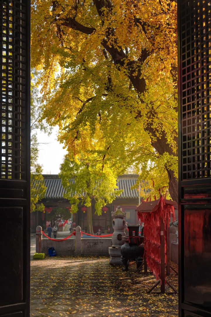 报恩禅寺大雄宝殿前的两株1300年“唐杏”,树龄超1300年,枝繁叶茂,遮天蔽日,默默见证着古寺的千年沧桑。