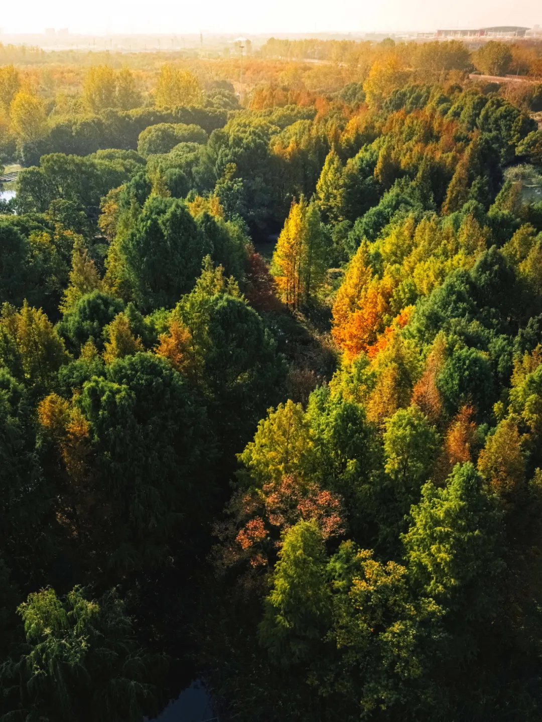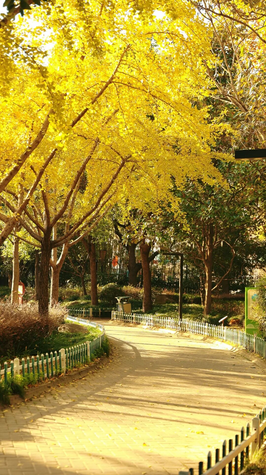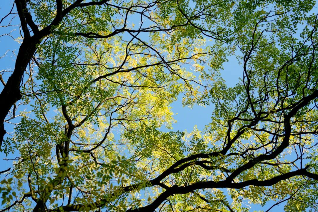 秋冬时节,满城尽是琥珀黄,远看一片郁郁葱葱,近看落叶纷纷飘落,绿意中的那抹黄格外令人难忘。