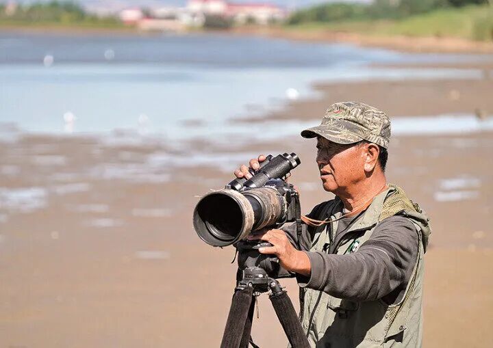 中国野生动物保护协会志愿者费明健,看着鸟儿在七里海潟湖上空飞翔、嬉戏、捕食,心中满是欣慰。记者李铎摄