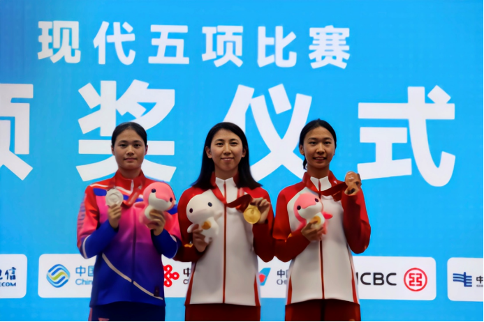 在现代五项项目中,2022级运动训练专业本科生张明煜以1447分的总分夺得现代五项(新五项)个人赛金牌,以1438分的成绩夺得现代五项(老五项)个人赛金牌。这位历经奥运会、亚运会淬炼的24岁名将,在本次全运会以两枚金牌的优异成绩再次展现了其在现代五项领域中的强劲实力。此外,2021级运动训练专业校友孟鑫斩获现代五项(老五项)个人赛铜牌。