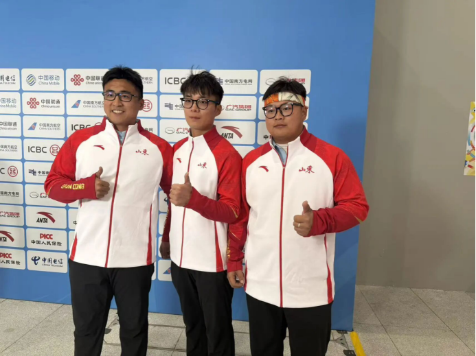 在射箭项目中,2023级运动训练专业本科生李梦麒在射箭反曲弓男子个人赛中以7:3战胜对手获得金牌,又与2020级运动训练专业校友孙权、2021级运动训练专业校友冯浩两位优秀校友组队斩获射箭反曲弓男子团体赛金牌。