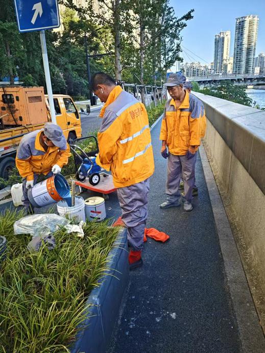 在项目建设中,静安区市政养护工程有限公司团队在三项关键工艺上取得了突破。防汛墙压顶涂装要经过11道复杂工序,还使用专用油漆,实现了美化、保护和装饰的效果;健身步道涂层采用特殊密封剂,具备防滑、环保、耐水、耐碱等特性;大理石防护应用了专业防水剂,能实现防水、防油、防污染等功能。