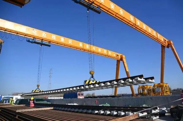 近日,在北京轨道交通22号线高楼站至齐心庄站区间施工现场,随着施工人员将首节25米标准轨排平稳铺设在U型槽道床上,这条跨越京冀的轨道交通大动脉河北段正式进入轨道铺设阶段。