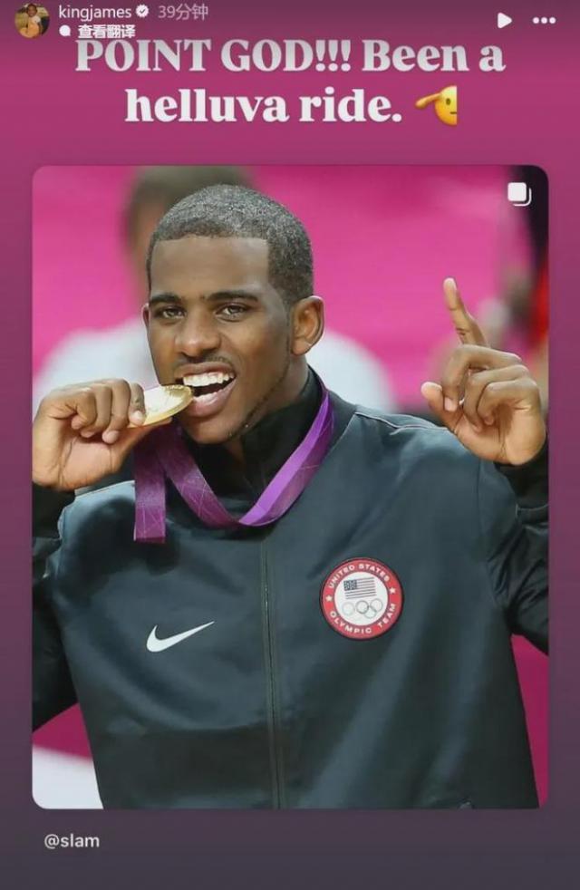 老伙计詹姆斯在个人社媒晒出保罗2008年北京奥运会咬着金牌的照片,并配文:“控卫之神,这真是一段惊心动魄的旅程。”