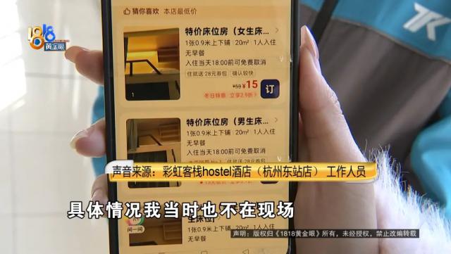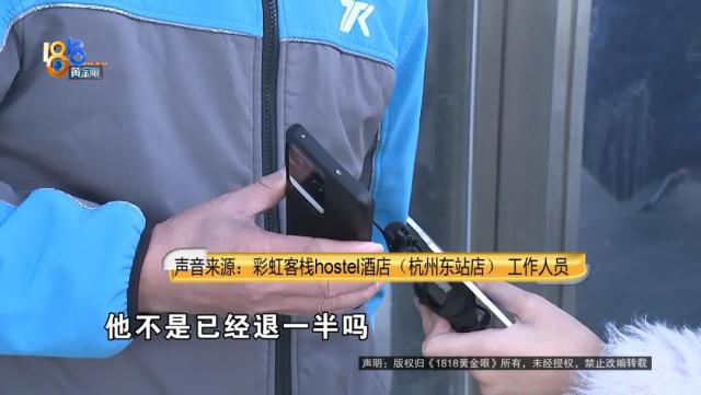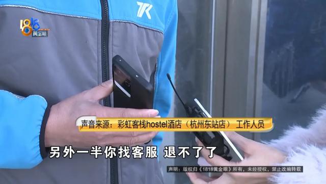 彩虹客栈hostel酒店(杭州东站店)工作人员称张先生已经退了一半房费,另外一半让他找客服,退不了了。张先生询问原因,商家挂断了电话。记者再用自己的手机打过去,工作人员还是让张先生问客服,并表示如果办理入住了就退不了,没入住可以退,具体情况自己当时不在现场。记者询问如何算办理入住,工作人员称去前台登记就算,记者表示没看到前台,工作人员坚称有,但不愿告知位置。