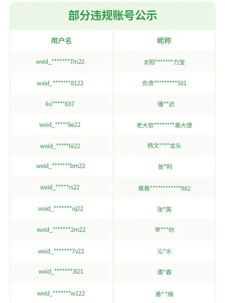 部分违规账号公示如下: