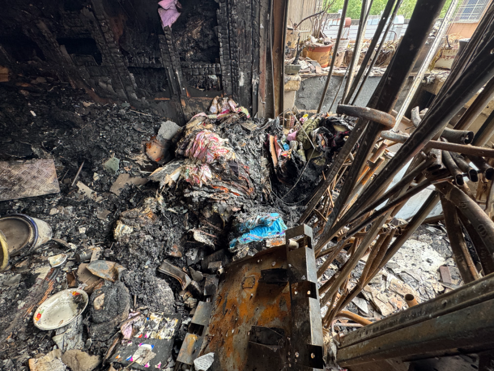 据现场目击者称,火灾发生时该住户家中无人,是邻居发现阳台明火后报了警。消防救援人员迅速赶来处置,虽然明火被及时扑灭,但房间已被烧得面目全非。