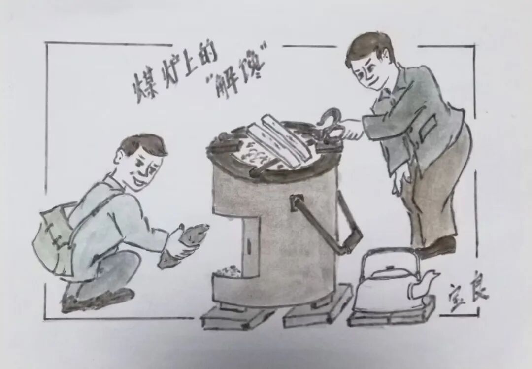 还有“烘年糕”,那时只有过年时粮店里才有配给供应的年糕。上海人一般习惯做“炒年糕、汤年糕”,我们小孩偶尔会做“烘年糕”解馋,这也是在煤炉上完成的。和“烘山芋”放在炉下不同,“烘年糕”是用搛煤球的夹件叉开搁在炉架上,把年糕直接放在夹件上用小火慢悠悠地“烘”。等年糕全部烘软了,我们就迫不及待地除去烘焦的部分开吃,那软软的质地就像“年糕团”,就差没包馅了。不过,大人看见我们空烧煤炉是不允许的,说这是浪费。