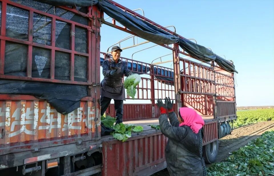 立冬时节,河北省唐山市滦南县坨上村的田间一片繁忙景象。农户们抓住晴好天气,忙着砍菜、分拣、装车,准备将白菜发往国内外市场。