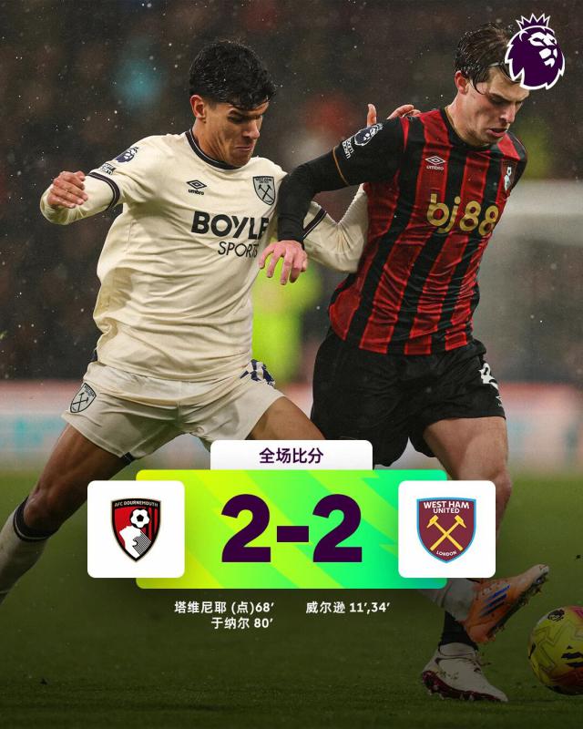 【伯恩茅斯2 - 2西汉姆联】
