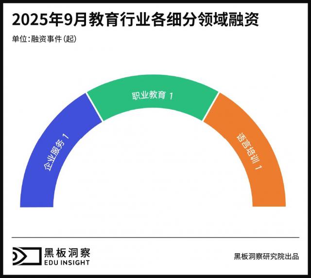 9月细分领域的融资事件中,职业教育、企业服务、语言培训各有1起。