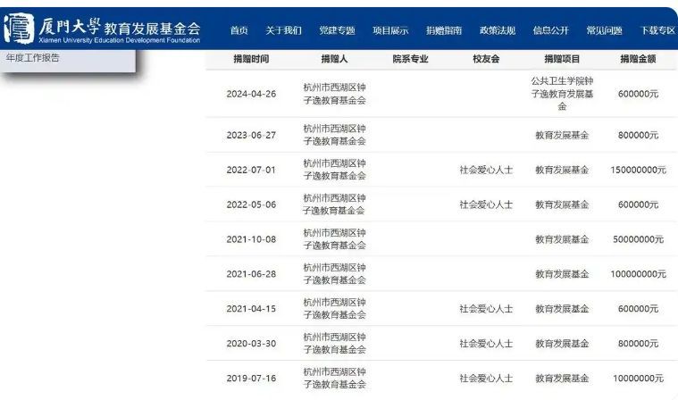 厦门大学教育发展基金会工作报告。截图自厦门大学官网