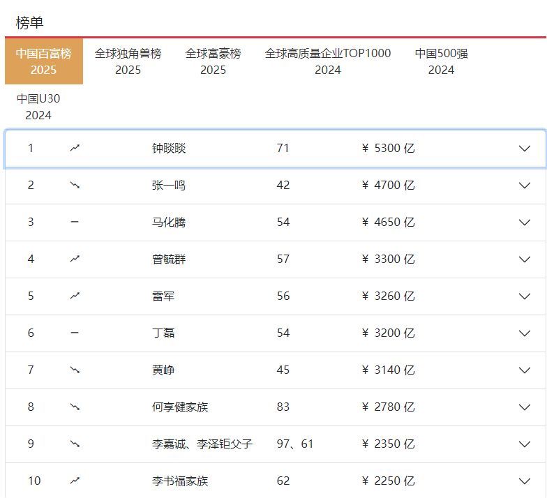 10月28日,《2025胡润百富榜》显示,钟睒睒财富增长1900亿元,以5300亿元第四次成为中国首富,并刷新了中国首富的财富纪录。