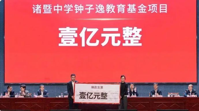 据钱江晚报11月23日消息,11月22日上午,诸暨市教育大会上,诸暨市教育强市奖励基金成立,现场收到多家企业累计1.42亿元捐赠。其中,农夫山泉创始人钟睒睒以个人名义向诸暨中学捐赠一亿元人民币,成立诸暨中学钟子逸教育基金项目。