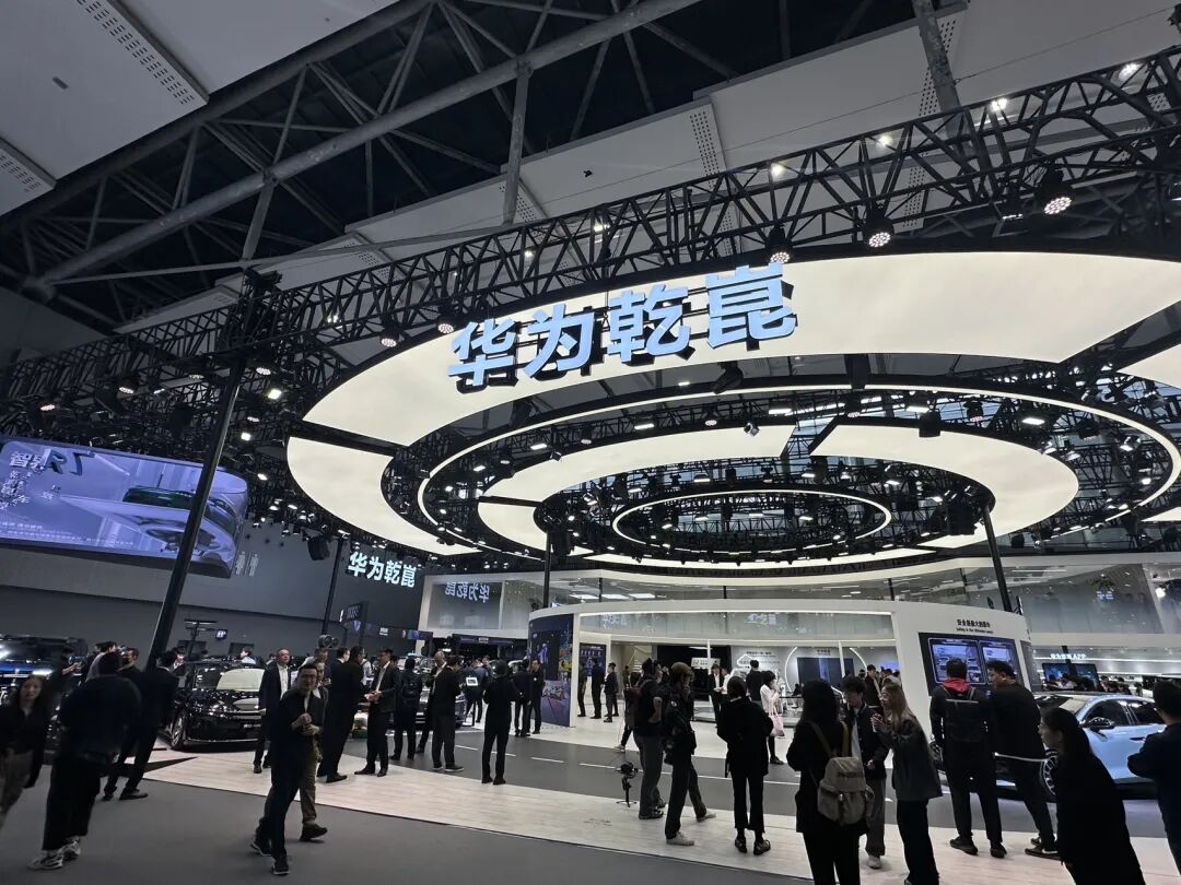 华为的“生态聚合式展台”是本届车展的“流量聚集地”,其创新的展示模式彻底颠覆了传统车企的单一展位逻辑。以“鸿蒙智行”为核心,华为联动问界、智界、享界、尚界四大合作品牌占据18.2号馆半个展馆。