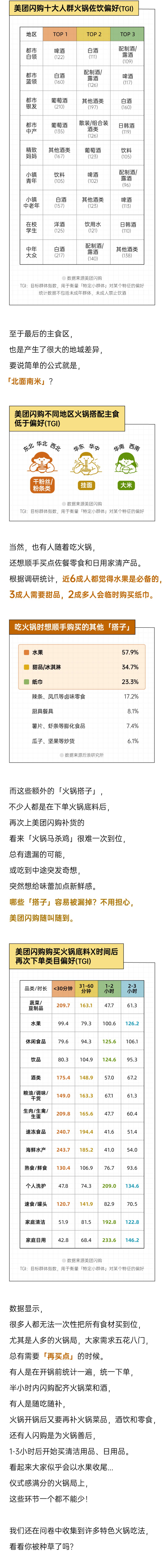 在八成消费者都会选择「利用线上平台完成一顿火锅美餐」的背景下,美团闪购也在深刻理解年轻人随时随地产生的「火锅想象」,App上品类齐全,不仅是蘸料底料火锅菜,酒水饮料、零食甜品甚至应急清洁工具,都能随时安排上,一键轻松集齐。即便是临时起意的快乐,也能迅速满足,让「精心策划」的火锅仪式不留遗憾缺口。