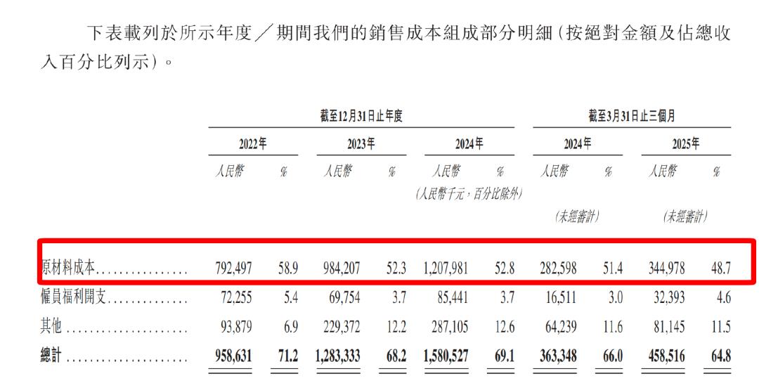 在硬件设备上,通过低价卷市场已是行业玩家们的集体选择。从已经递交招股书的创想三维来看,2022年至2024年,原材料成本占销售成本的比例始终在50%左右,同期毛利率则一直维持在30%左右。
