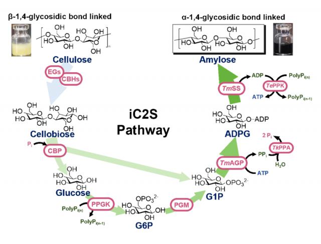 ▲ 纤维素到淀粉体外生物转化(iC2S)示意图