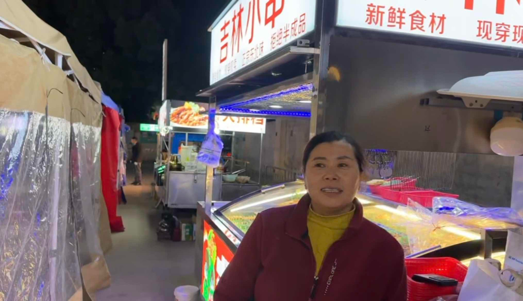 11月19日,一位吉林小串摊主告诉记者,以前在路边摆摊,垃圾多,经营地点也不固定。有了罗南夜市后,他们第一批进入摆摊,体验很好,“比外面好多了,垃圾不用自己清理,桌椅板凳夜市都提供。”