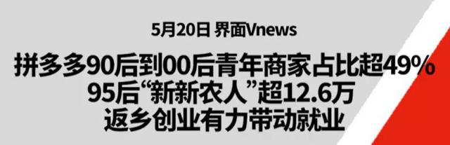行业竞争激烈时,拼多多没有盲目应战,而是挖掘年轻创业者。“千亿扶持”计划落地半年,平台“95 后”商家数量同比增长 42%,“00 后”商家数量飙升 44%。