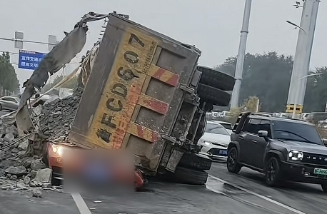 痛心!77吨超载货车侧翻,女教师不幸遇难