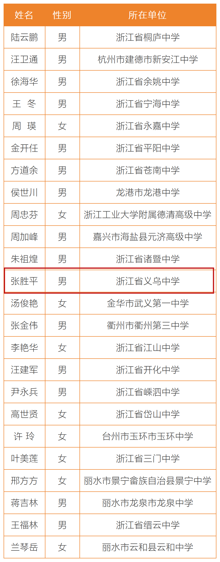 义乌中学张胜平入选首批全国县域普通高中头雁教师岗位计划