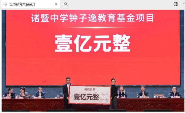 中国首富钟睒睒捐1亿设诸暨中学钟子逸教育基金项目