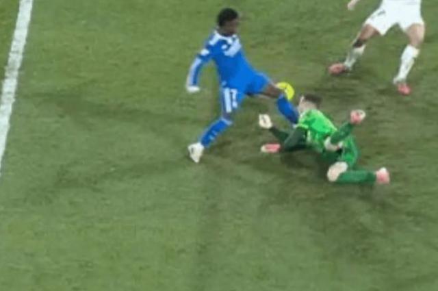 裁判判定此球有效!这个进球引发了巨大争议。慢镜头显示,维尼修斯有冲撞门将的嫌疑,他没碰到球,却把对手鼻子撞出血。