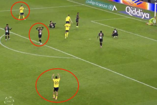 第77分钟,马内进球,将比分扩大为3 - 1,利雅得胜利几乎锁定了3分。到了第95分钟,C罗终于取得进球,并且这个进球堪称精彩绝伦。