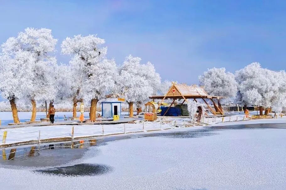 罗布人村寨,位于塔克拉玛干沙漠边缘,曾是罗布人长期居住的原始村落所在地。冬季来临,这里一片银装素裹,是具有别样风情的西域秘境。