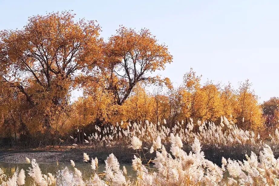 塔里木胡杨林公园,11月的胡杨枝干遒劲,金黄叶片映衬着蓝天,林间步道平缓开阔,既感受胡杨风骨,又能轻松拍出质感大片。