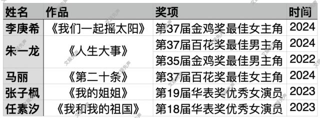 朱一龙和马丽就是典型。朱一龙凭借金鸡奖、百花奖双料影帝进入电影圈核心,马丽凭借百花奖影后证明了演技,获得了与张艺谋、姜文、郭帆等顶级导演合作的机会。