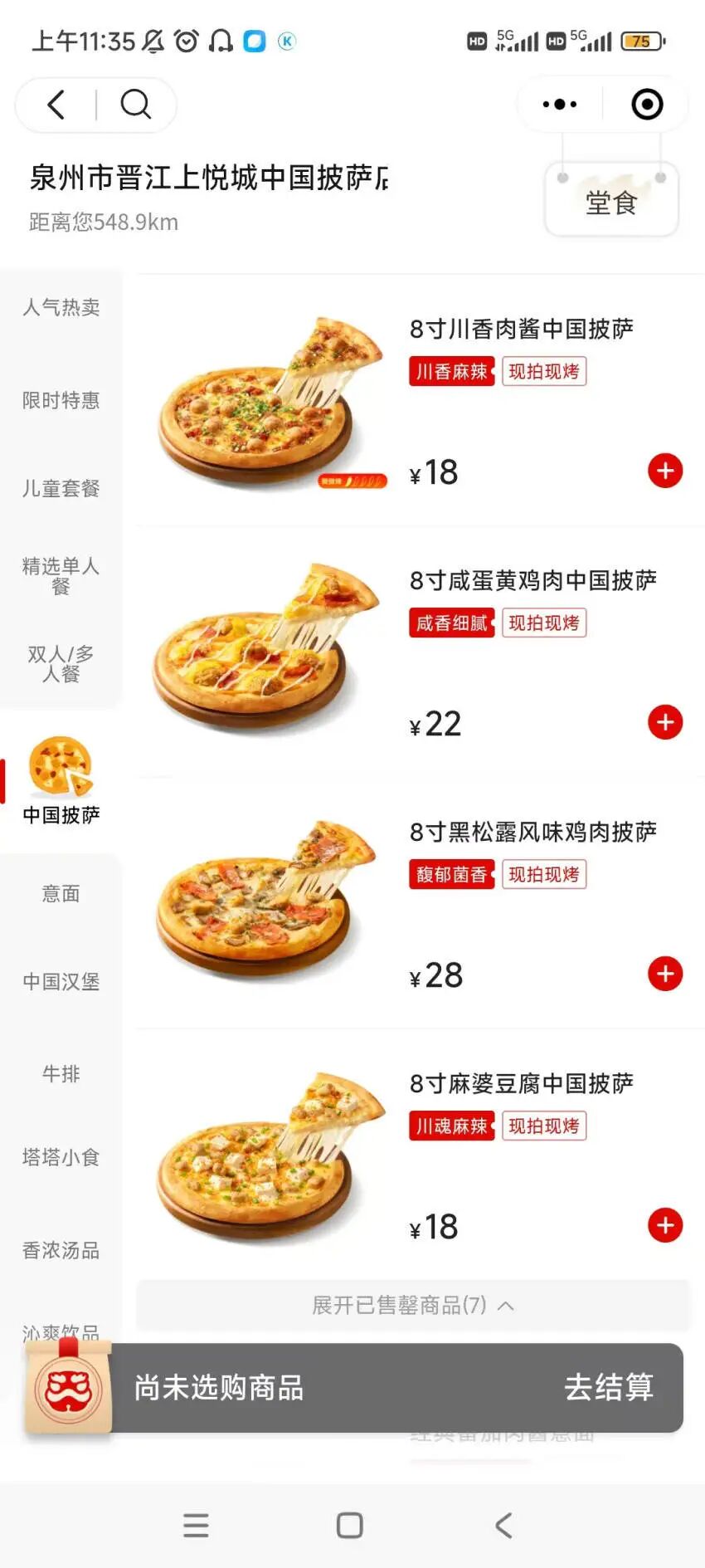 除了主打的披萨产品,门店还保留了香辣鸡腿堡等塔斯汀经典汉堡单品,同时新增了牛排、焗饭、汤品、冰淇淋等品类,其中桂花酒酿糍粑、胡辣汤浇汁土豆泥等中式风味小食,进一步强化了其“中式披萨店”的特色标签。