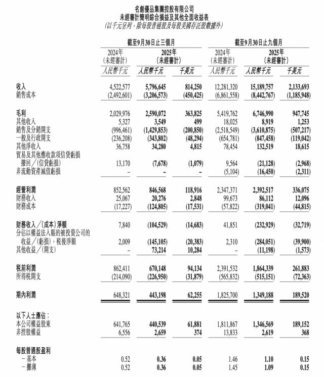 11月21日,名创优品公布了截至2025年9月30日止三个月及九个月的未经审计财务业绩。