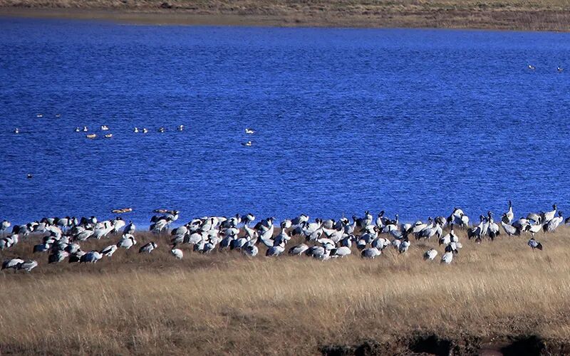 自11月13日10只黑颈鹤作为‘先头部队’抵达云南昭通大山包后,大山包黑颈鹤国家级自然保护区迎来了越冬候鸟的迁徙高峰。截至11月19日,尽管受到大雾等天气的影响,保护区工作人员监测到的黑颈鹤数量已突破300只。同时,斑头雁、赤麻鸭等各类水鸟也陆续飞来越冬,总数超过1000只。