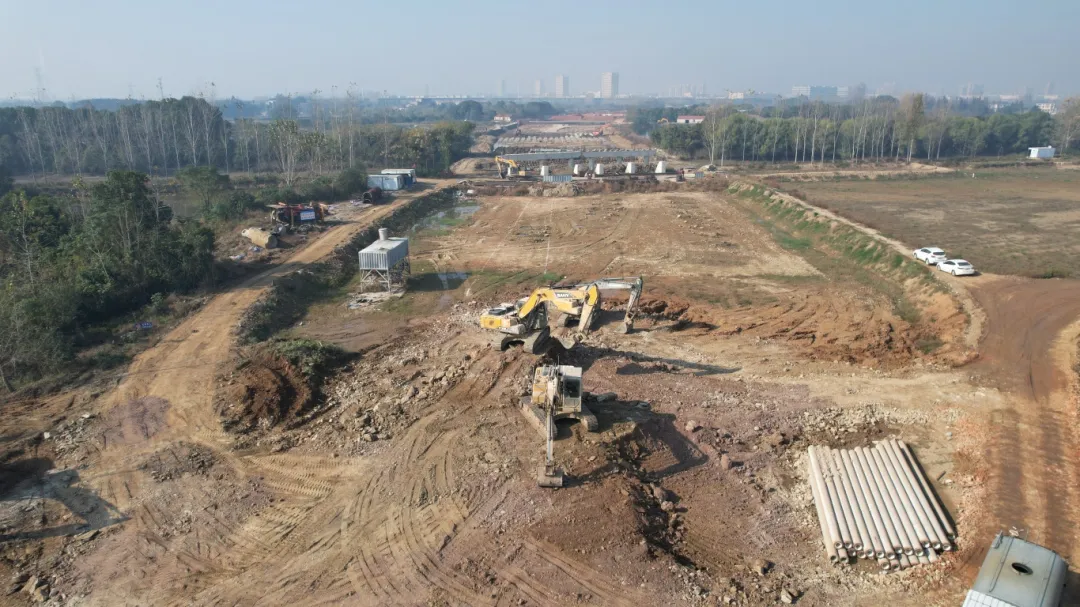 硚孝高速连接线至G107段一标段施工进展顺利,全域清表、清淤已100%完成,预应力管桩和水泥搅拌桩均完成78%,路基回填完成30%,滚子河东支桥已完成36根桩基,跨G107大桥也已完成53根桩基。