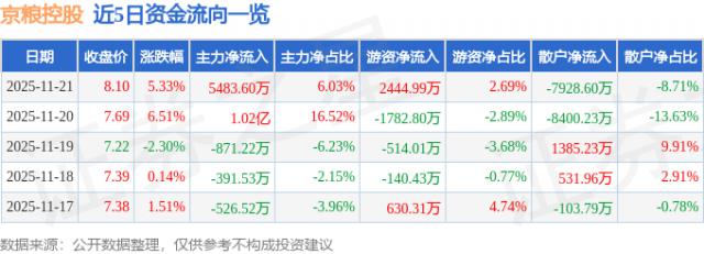 11月21日资金流向数据显示,主力资金净流入5483.6万元,占总成交额的6.03%;游资资金净流入2444.99万元,占总成交额的2.69%;散户资金净流出7928.6万元,占总成交额的8.71%。