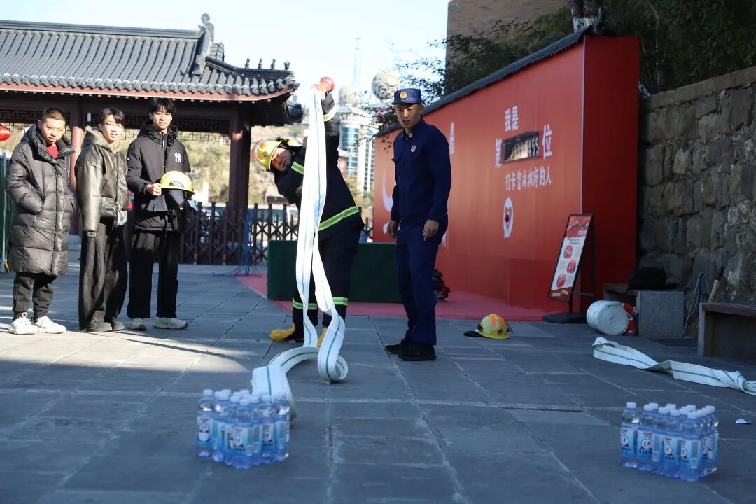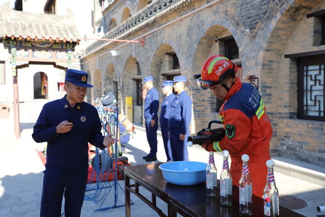 晋城市消防救援支队联动皇城相府景区,启动“穿越三百年,消防记心间”古堡消防守护计划。活动挖掘古堡防火智慧,从藏兵洞装备讲解与体验,到河山楼预警理念引申,再到“太平缸”“风火墙”古今防火对比,将历史防御智慧与现代消防理念结合。非遗剧场内,方言消防“三句半”与古典舞蹈《开按接转》以群众喜闻乐见的形式普及消防知识,实现历史文化与现代安全对话。