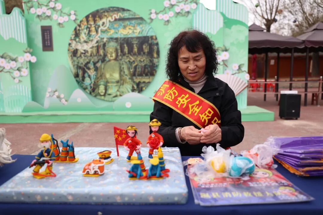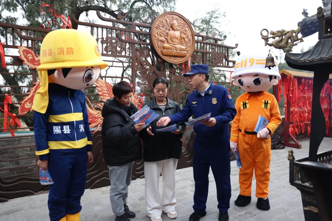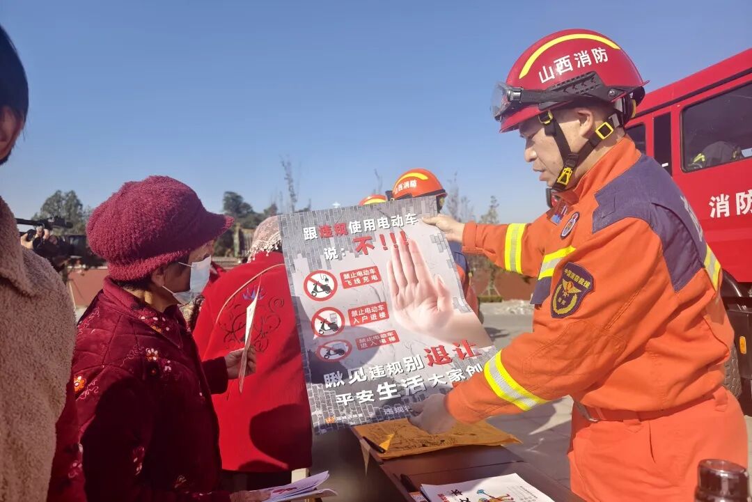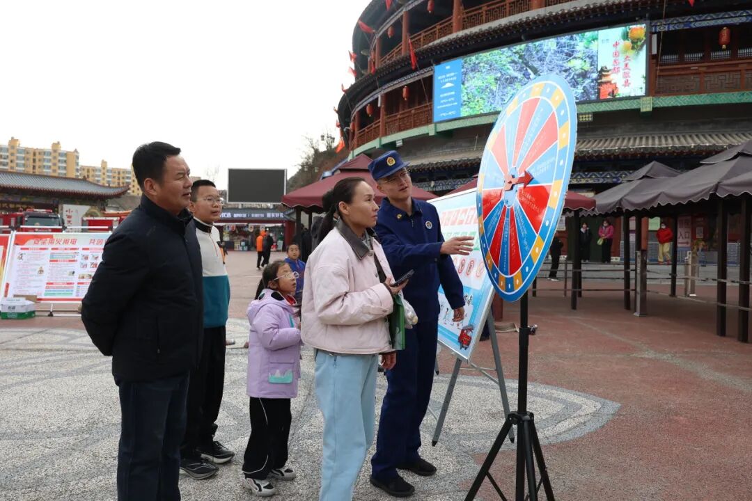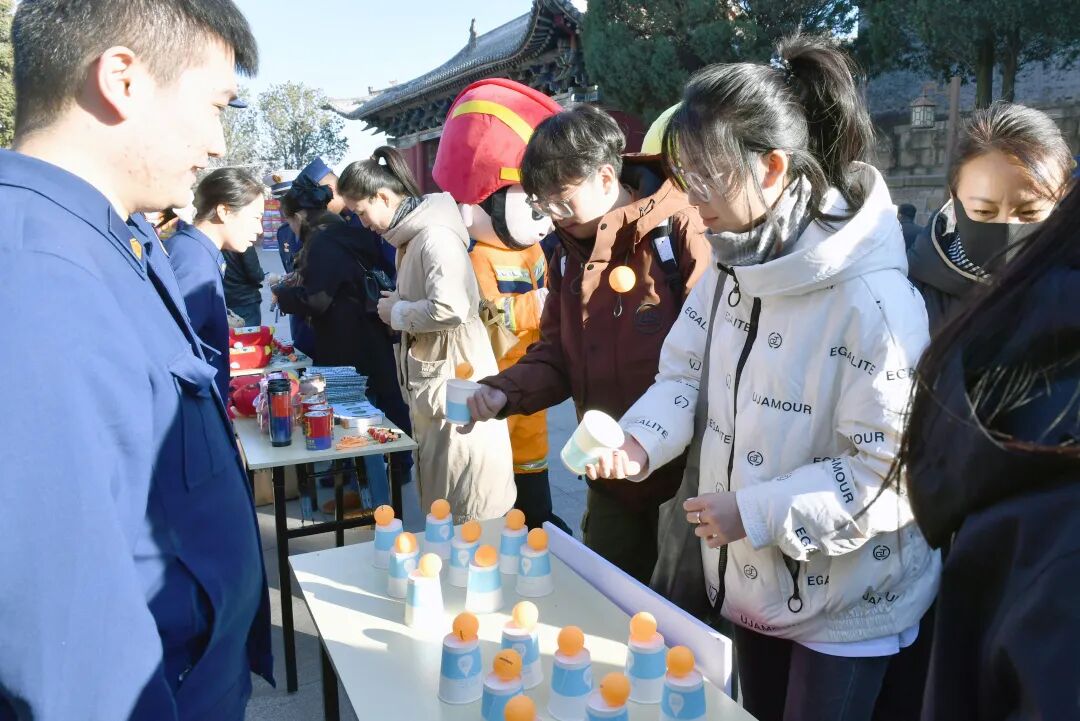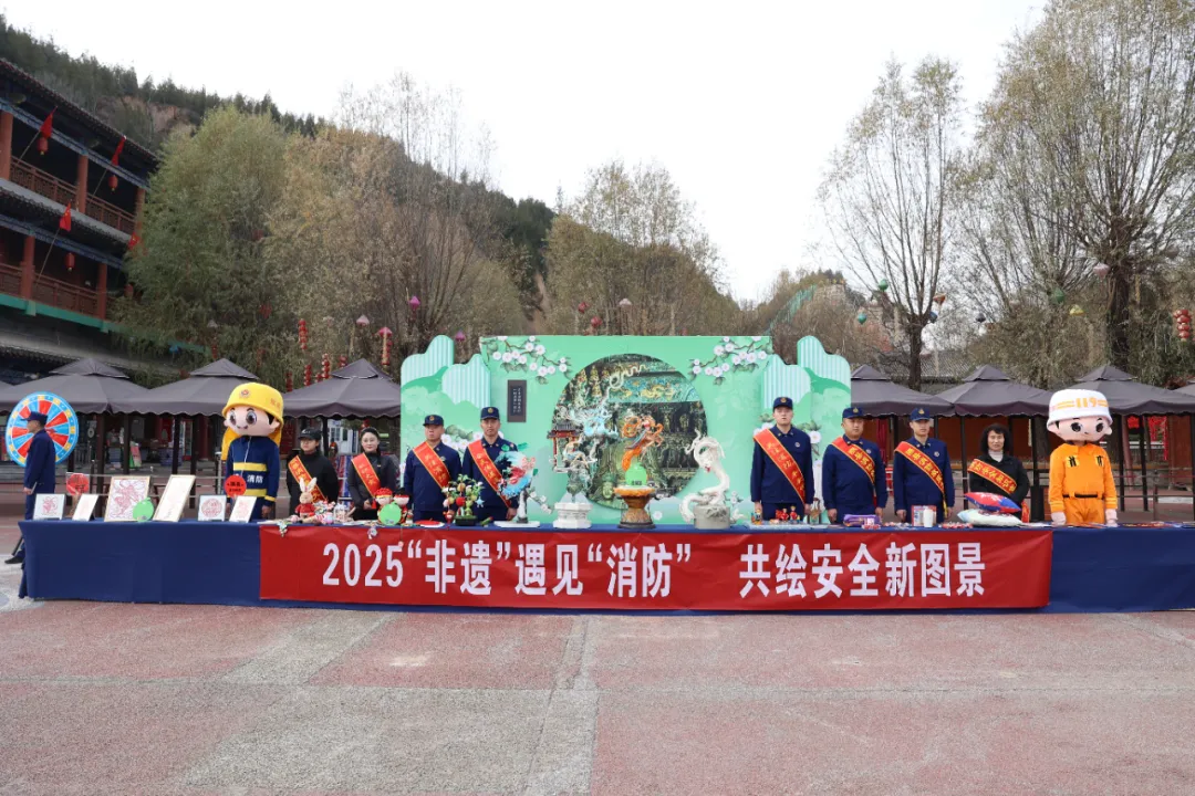 临汾市消防救援支队联合隰县文旅局、小西天景区及非遗保护中心,采用“科普+非遗+互动”模式,在小西天景区打造多元化宣传阵地。针对砖木结构古建冬季防火痛点,设置主题展板、发放定制文创,精准普及古建防火知识;邀请剪纸、面塑非遗传承人现场创作,把“消防员守护小西天”“禁止吸烟”等场景融入作品,讲述古建保护与火灾防范的关联;设置知识问答转盘、消防标识比拼等互动环节,提升群众参与积极性。