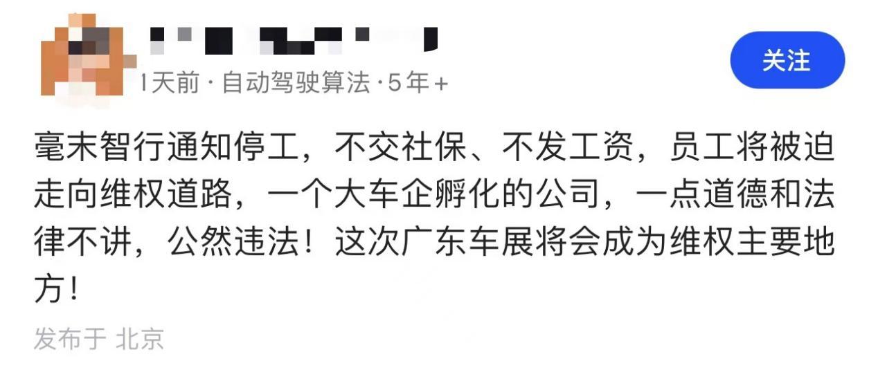 情况随后急转直下,多位高管离职转投其他公司,包括技术副总裁艾锐、产品副总裁蔡娜、智行品牌官王佳等人。CEO、董事长、人事等高管被多名员工接连在公司大群内@讨要欠发的年终奖,并得到了数十位员工的声援,但高管们一直未作出回应。信任危机由此加剧。