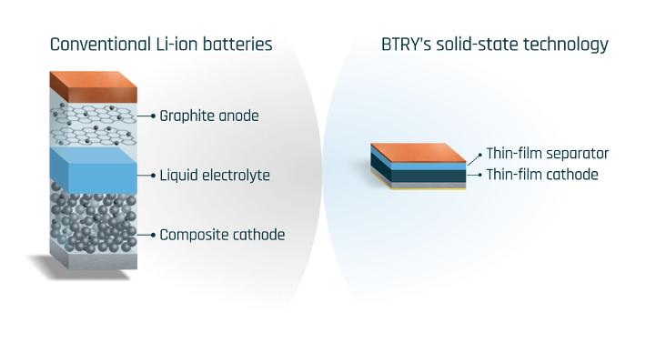 与传统锂离子电池相比,BTRY的固态设计精简了层状结构,无需液态电解质,整体架构更纤薄安全。