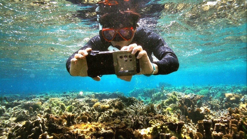环保工作者使用三星Galaxy智能手机进行珊瑚礁保护拍摄