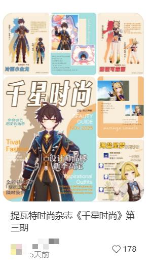 为了游戏里前所未有的个性化体验,愿意为之付费的玩家不在少数。小红书上分享穿搭和捏脸的帖子比比皆是,甚至还能看到持续更新“提瓦特时尚周刊”。