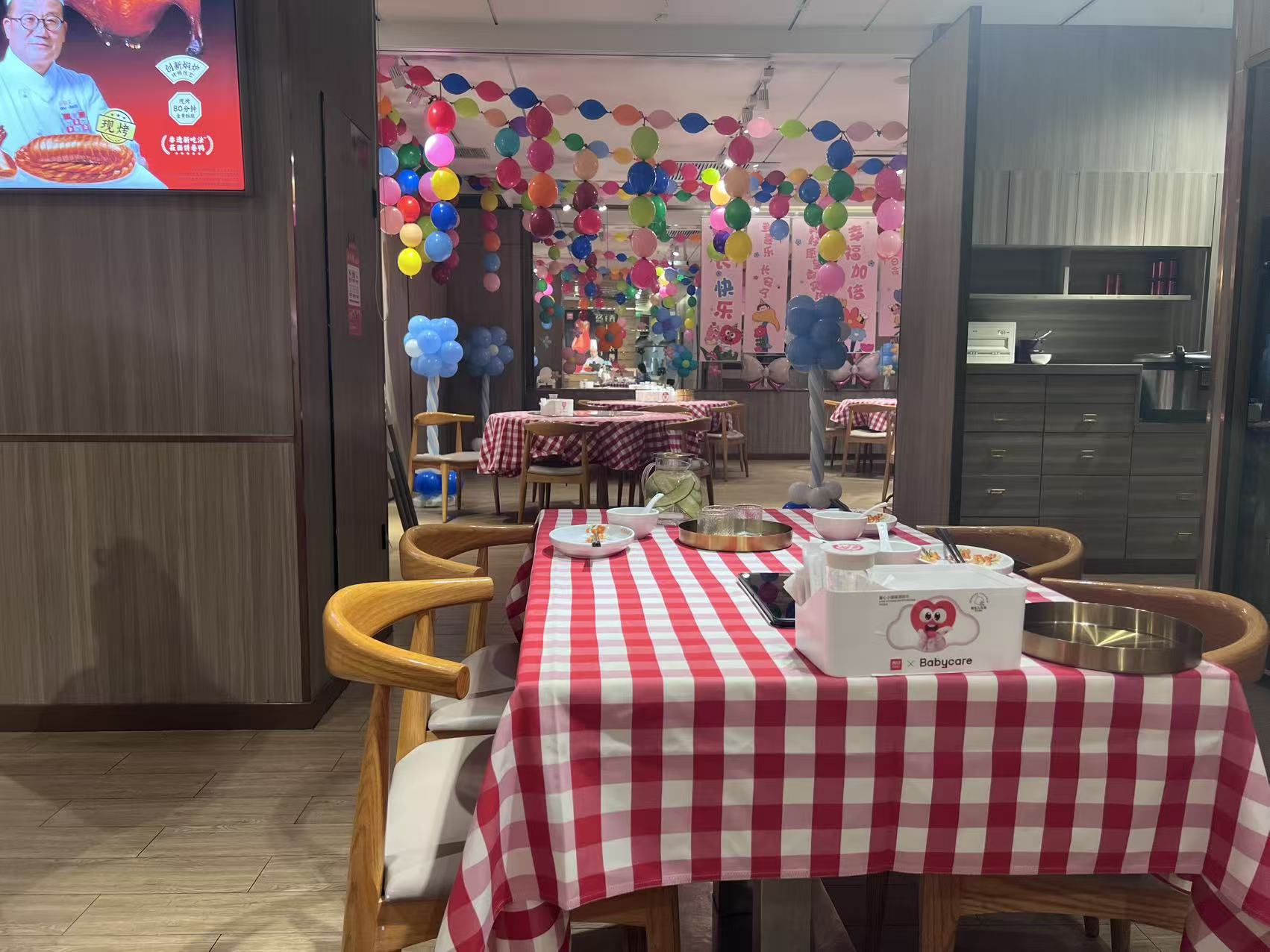 由于家庭客群战略地位的提升,除了专门的儿童餐菜单,也体现在西贝门店布置和服务等一系列变化中。界面新闻观察到,西贝的等位区域有吸引儿童的气球玩具,桌上的纸巾和湿巾也使用了母婴品牌Babycare的产品。