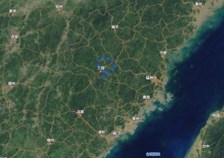 蓝色线段点标注区域为沙县
