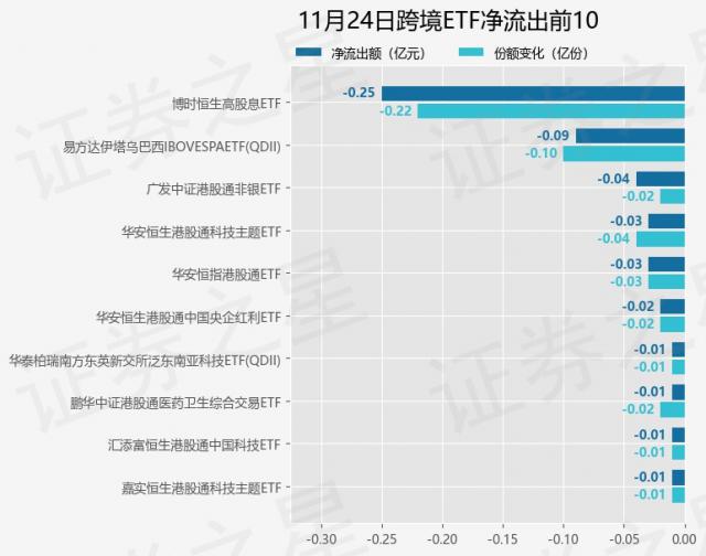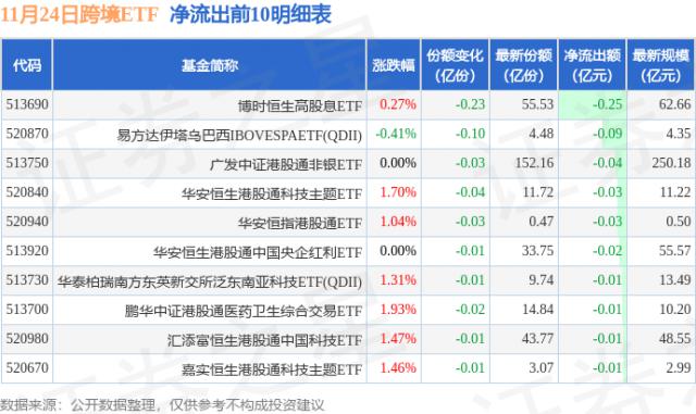 与此同时,当日有12只跨境ETF基金出现资金净流出情况。博时恒生高股息ETF(513690)成为净流出最多的基金,其份额减少了2250.0万份,净流出额为2521.65万元。