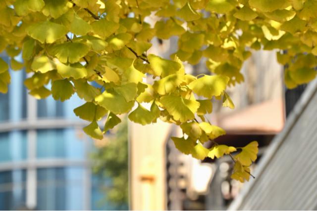 车水马龙的常德路是此季焦点,从北京西路至延安西路段,银杏叶正被时光晕染,从翠绿缓缓转为明黄,景致渐入佳境。几株沐浴阳光的树木已绽放出耀眼金光,在秋冬的每日里,呈现着不同的风姿。