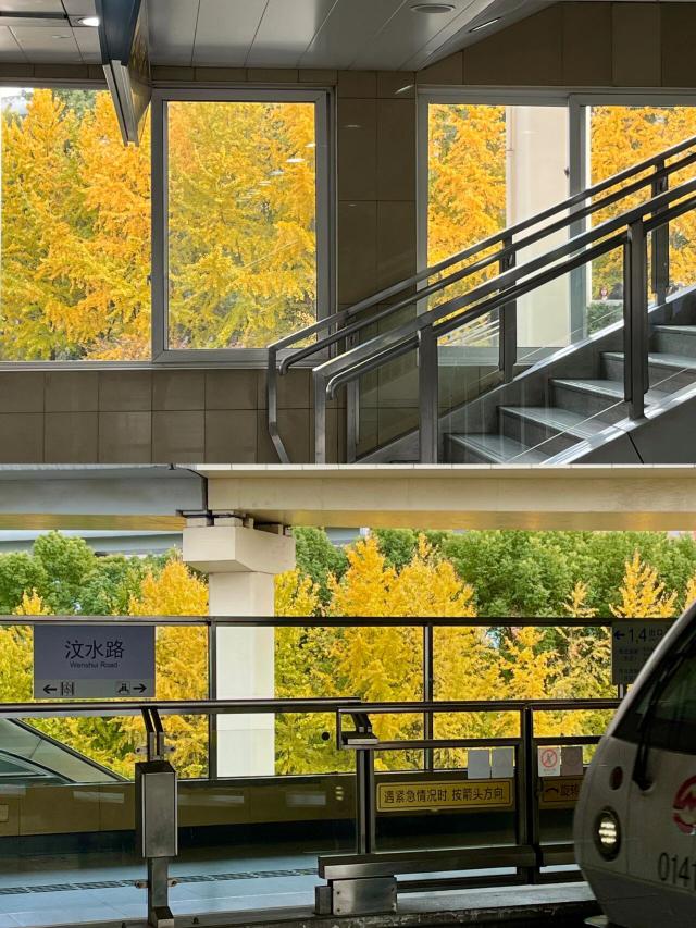 近年申城银杏季热门打卡地,如电影画面般浪漫的车站